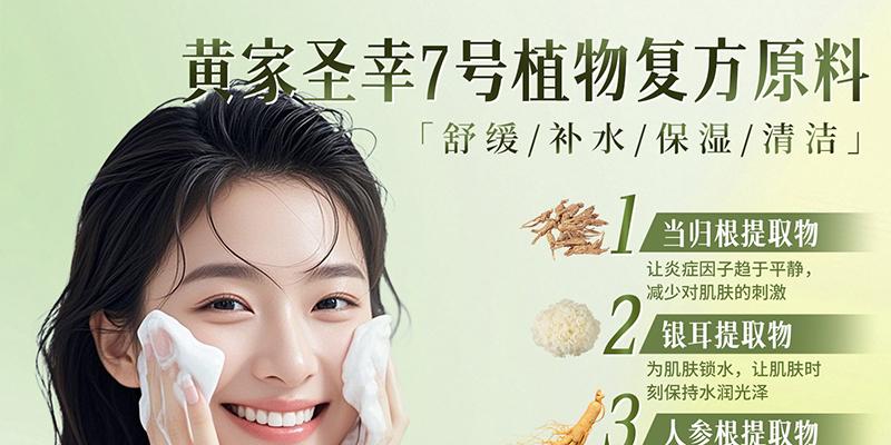 兼具清洁力与温和性。添加了黄家圣幸7号植物复方原料,其中的当归根提取物可调节信号通路,让炎症因子趋于平静,能在清洁的同时减少对肌肤的刺激,敏感肌也可放心使用。